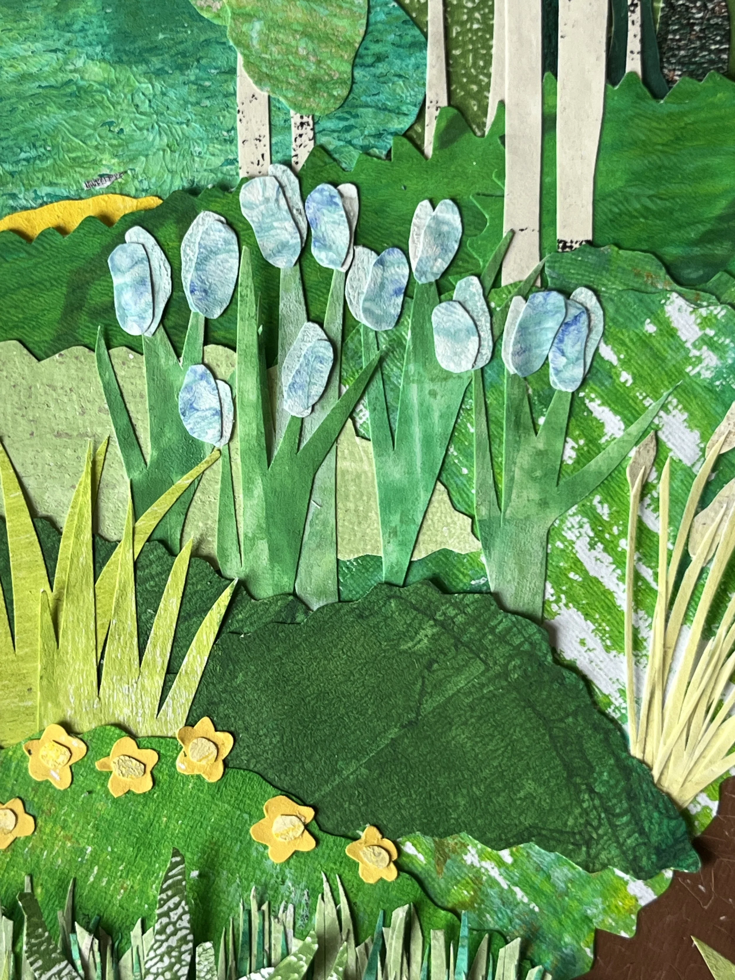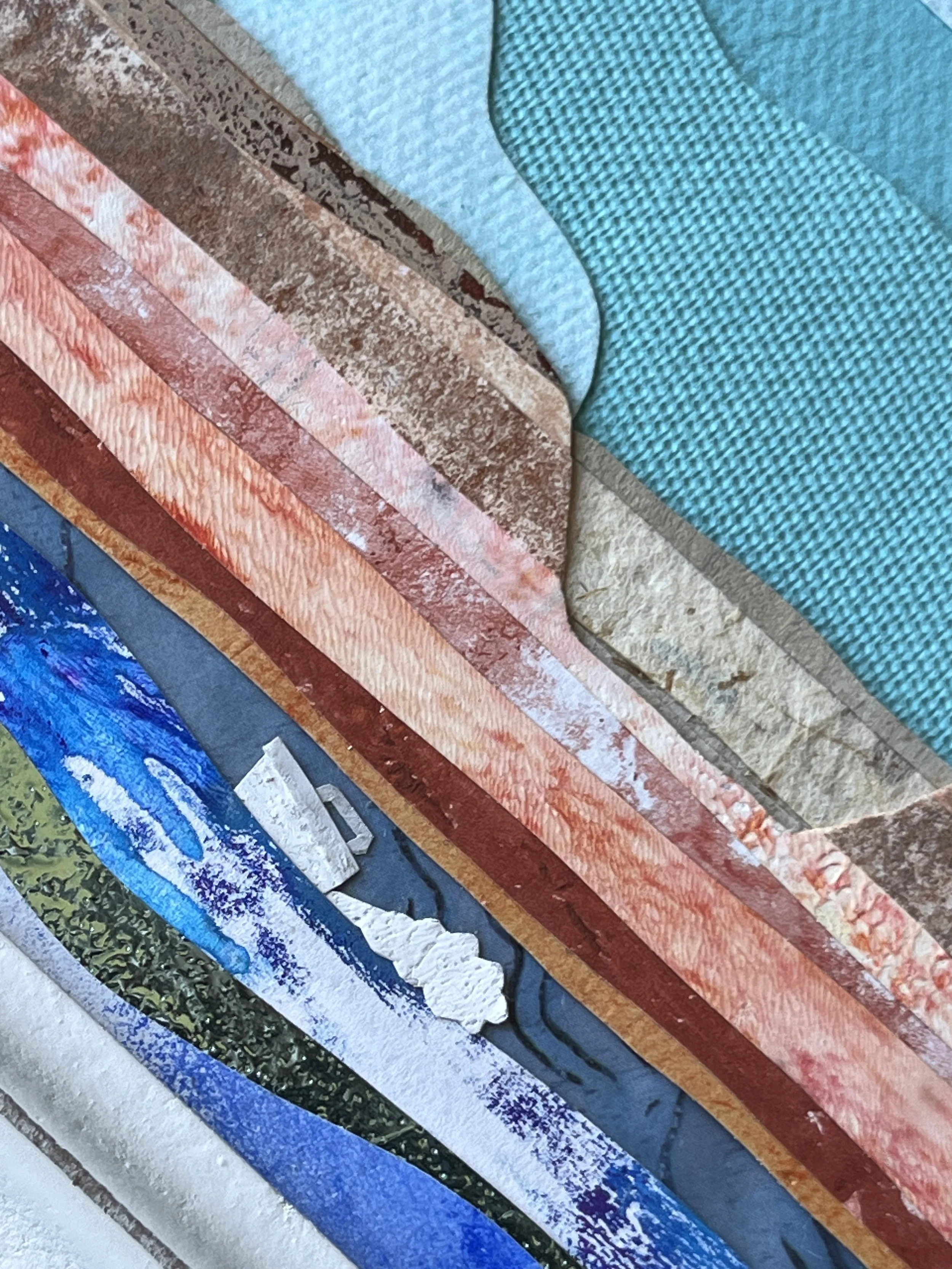 Hello friend! I’m Amandine Loveland, a collage artist working with secondhand paper to tell personal, emotional stories through cut and color. I’m drawn to scraps, fragments, and forgotten papers — things that already lived a life. My work is about giving them new meaning.